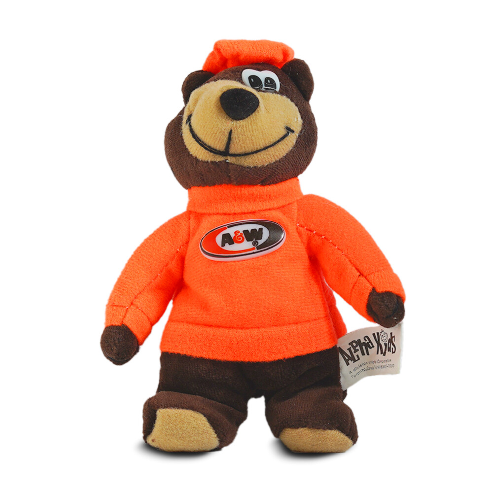 주황색 스웨터를 입은 멋쟁이 곰돌이는 A&W 마스코트 Rooty 입니다.