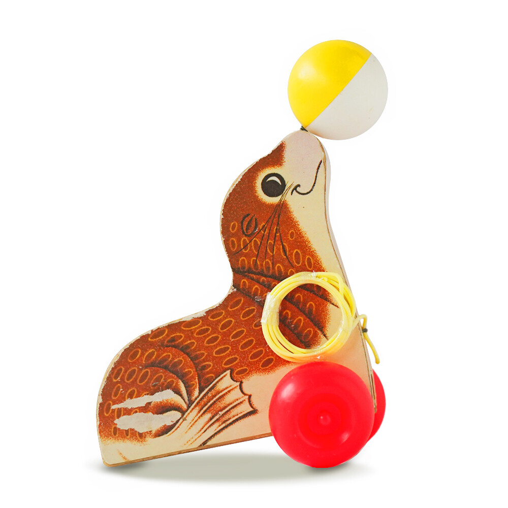 Fisher Price에서 60년대 생산된 나무로된 물개 장난감입니다.